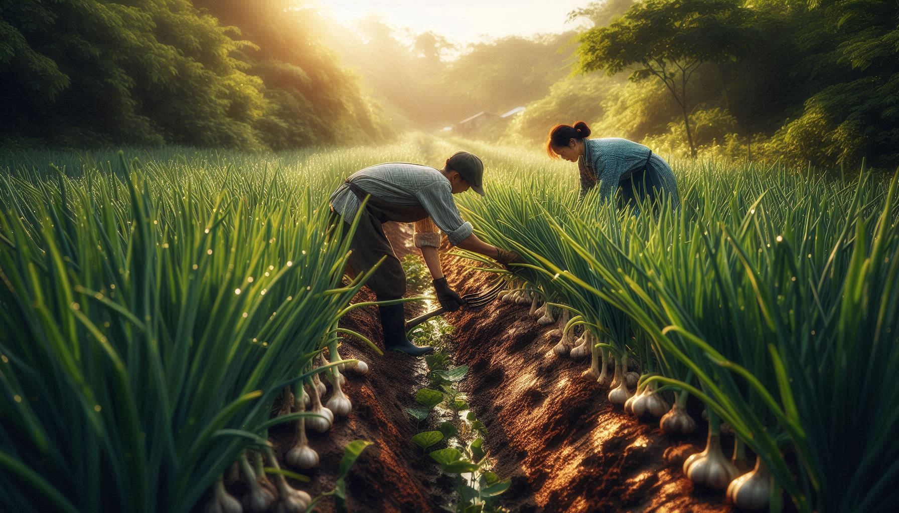 Use natural fertilizers like compost, vermicompost, and neem cake to promote healthy growth. Side-dress with nitrogen-rich organic fertilizers after 30–40 days of planting. Potassium and phosphorus are also essential for bulb development. Avoid chemical overuse; organic methods ensure better taste, quality, and soil health.